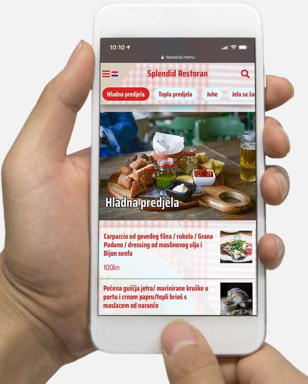 Pogledajte primjer cjenika prilagođen restoranima. Domena: danasnji.menu
